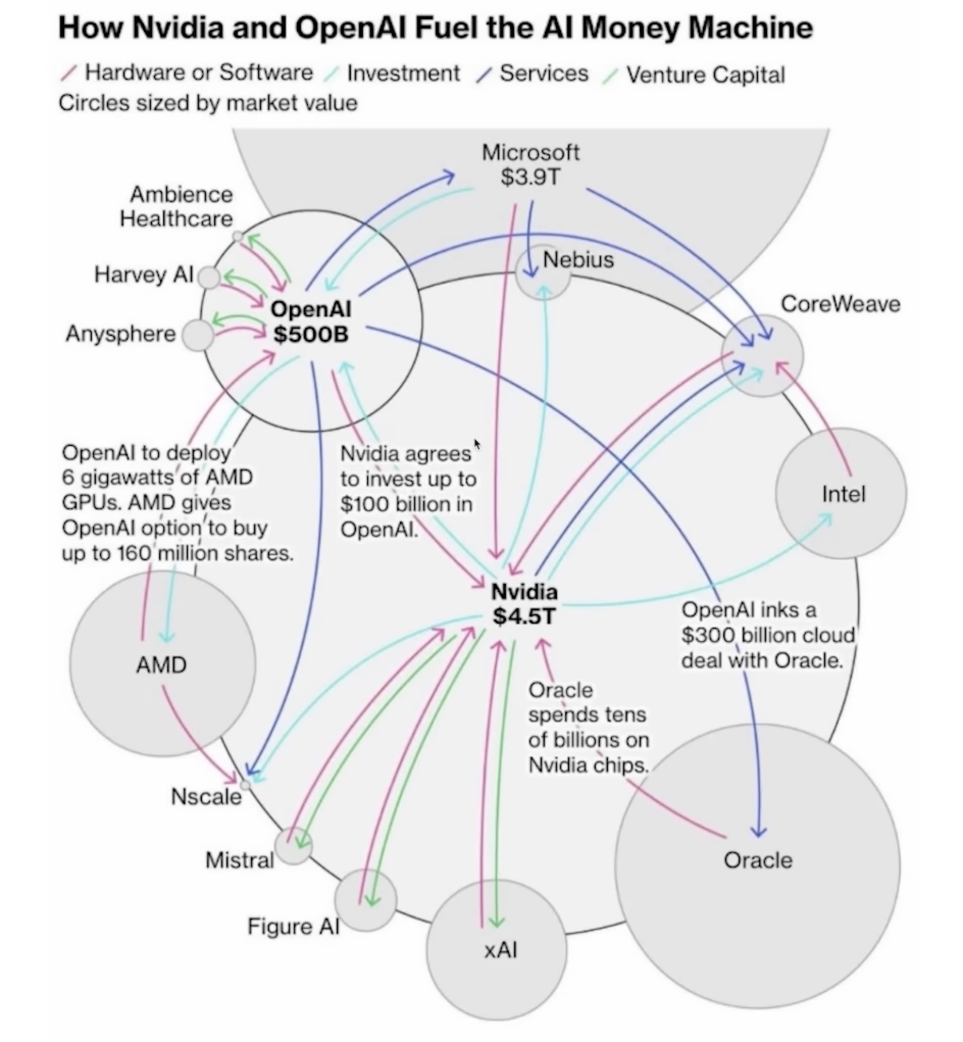 What you see, if you follow the lines, is that a lot of the AI industry is propping itself up kinda like some sort of a Ponzi scheme where they’re all investing in one another. It’s bizarre.